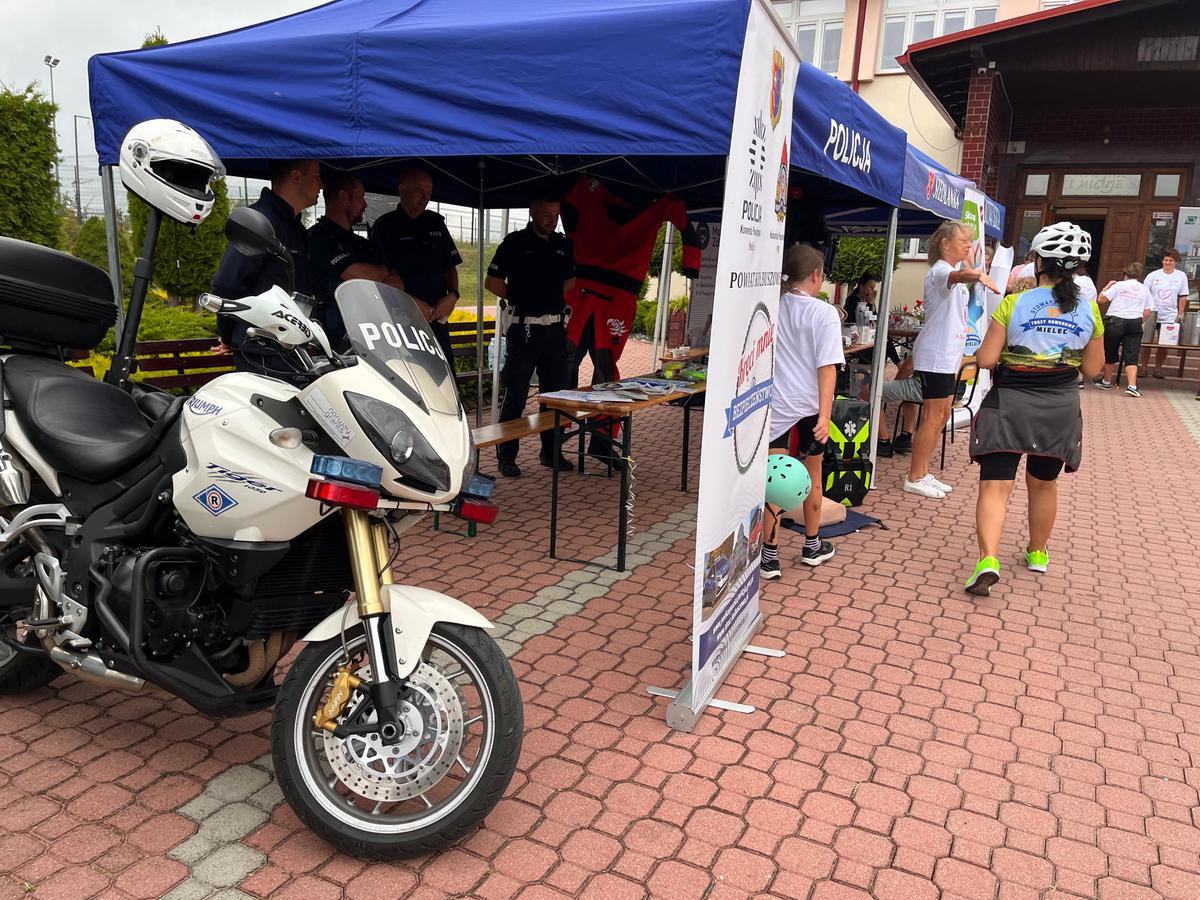 Głównym punktem policyjnego zaangażowania było wystawienie stoiska profilaktyczno-edukacyjnego, które cieszyło się ogromnym zainteresowaniem zarówno dzieci, jak i dorosłych. Na uczestników czekało tam wiele atrakcji. Najmłodsi oraz ich opiekunowie mogli z bliska zobaczyć wyposażenie indywidualne funkcjonariusza, jakie wykorzystuje on w codziennej służbie. Policjanci chętnie opowiadali o swojej pracy, demonstrowali działanie sprzętu i odpowiadali na liczne pytania. Uczestnicy rajdu mieli możliwość zobaczenia z bliska policyjnego radiowozu oraz motocykli, co dla wielu młodych uczestników było jednym z największych przeżyć dnia.