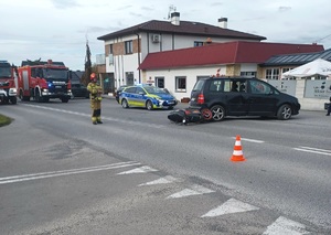Zderzenie samochodu osobowego ze skuterem. Jedna osoba trafiła do szpitala